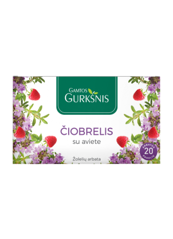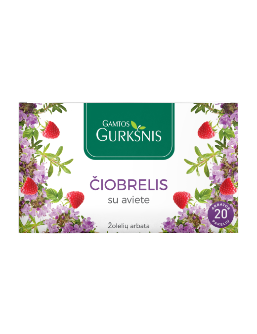 Čiobrelių žolė - 83 %, aviečių lapai, saldymedžių šaknys, aviečių kvapioji medžiaga, aviečių vaisiai.