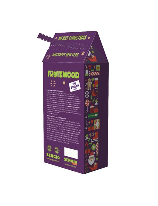 FRUITMOOD iš SERGIO – tai vaisiniai skanumynai ir vaisiniai batonėliai, siūlantys aukštos kokybės, natūralų ir sveiką užkandį su dideliu vaisių kiekiu. Šie batonėliai pagaminti iš natūralių ingredientų, be glitimo ir gyvūninės kilmės produktų, juose nėra pridėtinių dažiklių ar konservantų, todėl tinka vaikams ir visai šeimai kaip sveikas užkandis į mokyklą ar į iškylą.