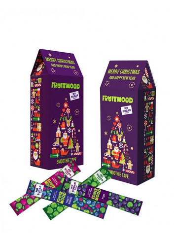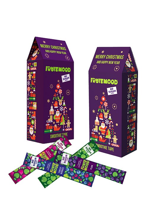 Vaisių-uogų užkandukai dovanų dėžutėje „Stebuklų šalies žiemos namai“ (Be cukraus), 100g